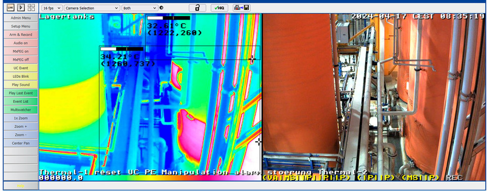 Dabei haben wir eine hochmoderne Thermalkamera-Anlage für die Brandfrüherkennung installiert, die speziell für industrielle Umgebungen entwickelt wurde. Die Anlage besteht aus MOBOTIX-Thermalkameras, die nach den strengen VdS-TRVB-Richtlinien zertifiziert sind und somit eine direkte Anbindung an die Brandmeldeanlage ermöglichen.